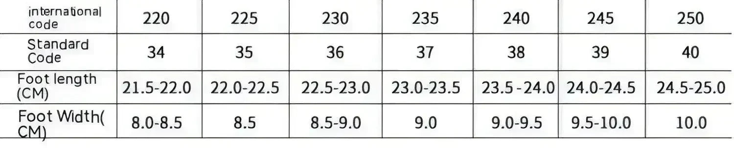 | US Size | EU Size | UK Size | Foot Length (in/cm) | Heel Height (in/cm) | Shaft Height (in/cm) |